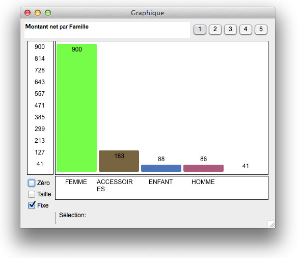 • Statistiques clients, articles, chiffres d’affaire, marge, famille, catégorie, commerciaux sous forme de graphiques